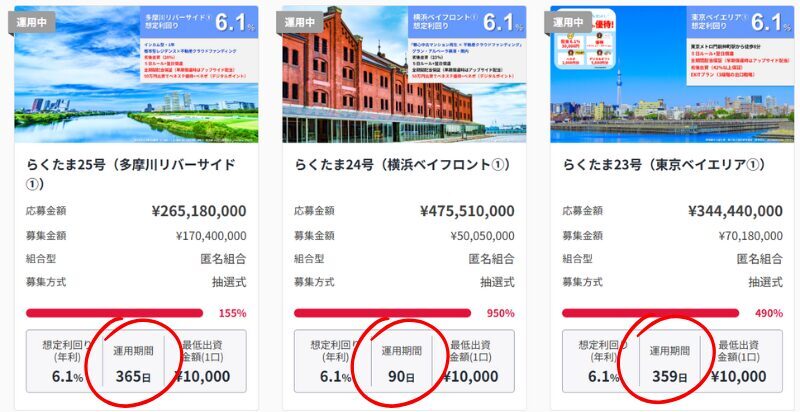 運用期間が長い案件の場合はこういった資金拘束リスクがありますが、運用期間が短い場合はこうったリスクを減らすことができます✨