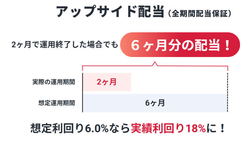 - 全期間配当保証で早期償還で実質利回りがさらに上がる
