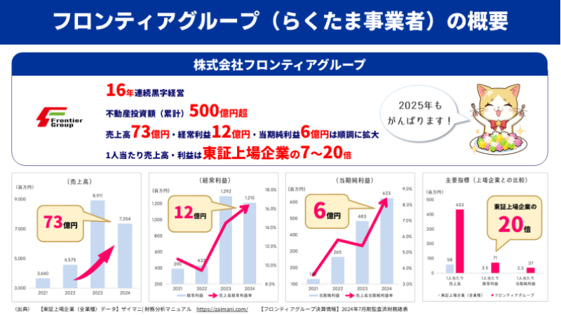 らくたま自体はサービスを開始してまだ短いですが、運営元のフロンティアグループは不動産事業を行っていて創業18年目とノウハウが豊富なだけじゃなく