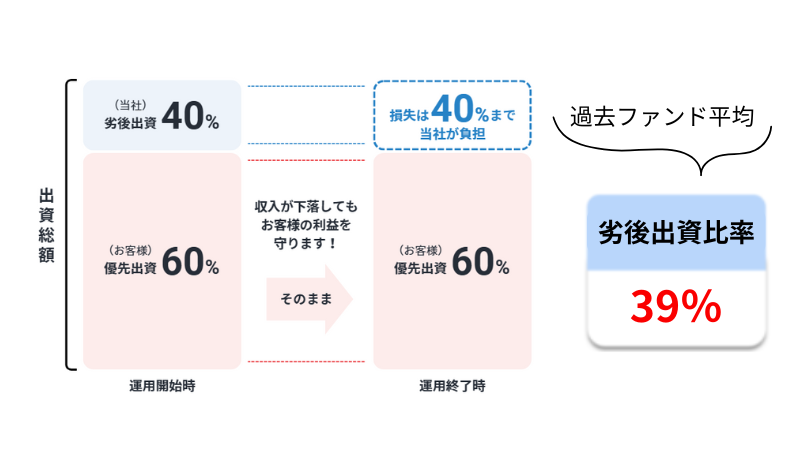 そこで、らくたまでは全ファンドに「劣後出資システム」を採用しています。