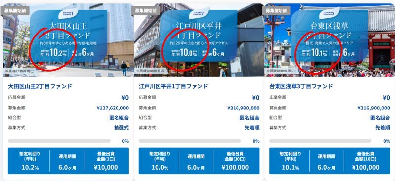 第1号ファンドは想定利回り10.2%と業界水準の3~8%に比べて高い✨
