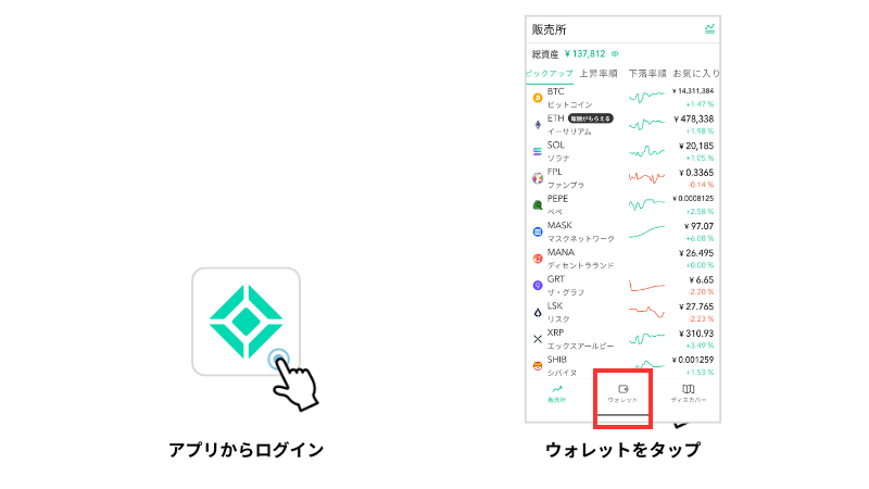 これからの作業はコインチェックのアプリから行います。