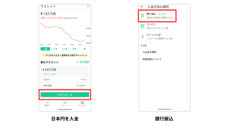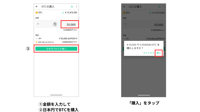 引き続きアプリを使ってビットコインの購入を進めます。