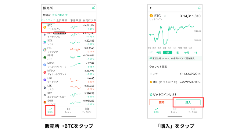 次は入金したお金を使ってビットコインを買うよ😊