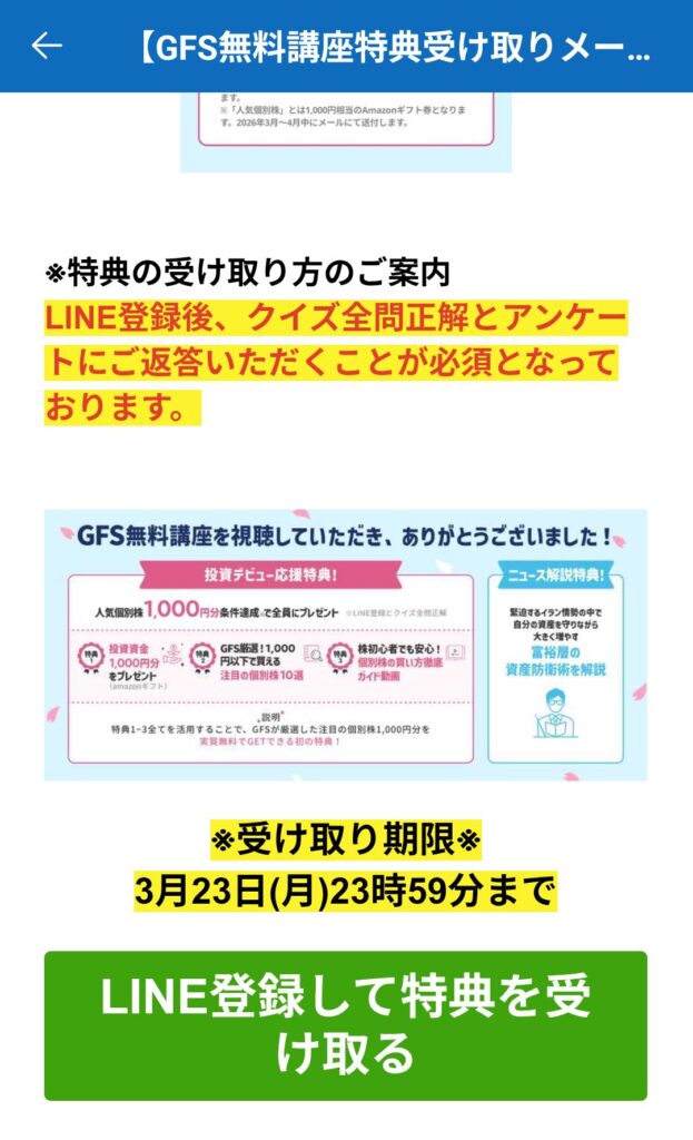 LINEで友達追加するとクイズの案内が届くからここから回答