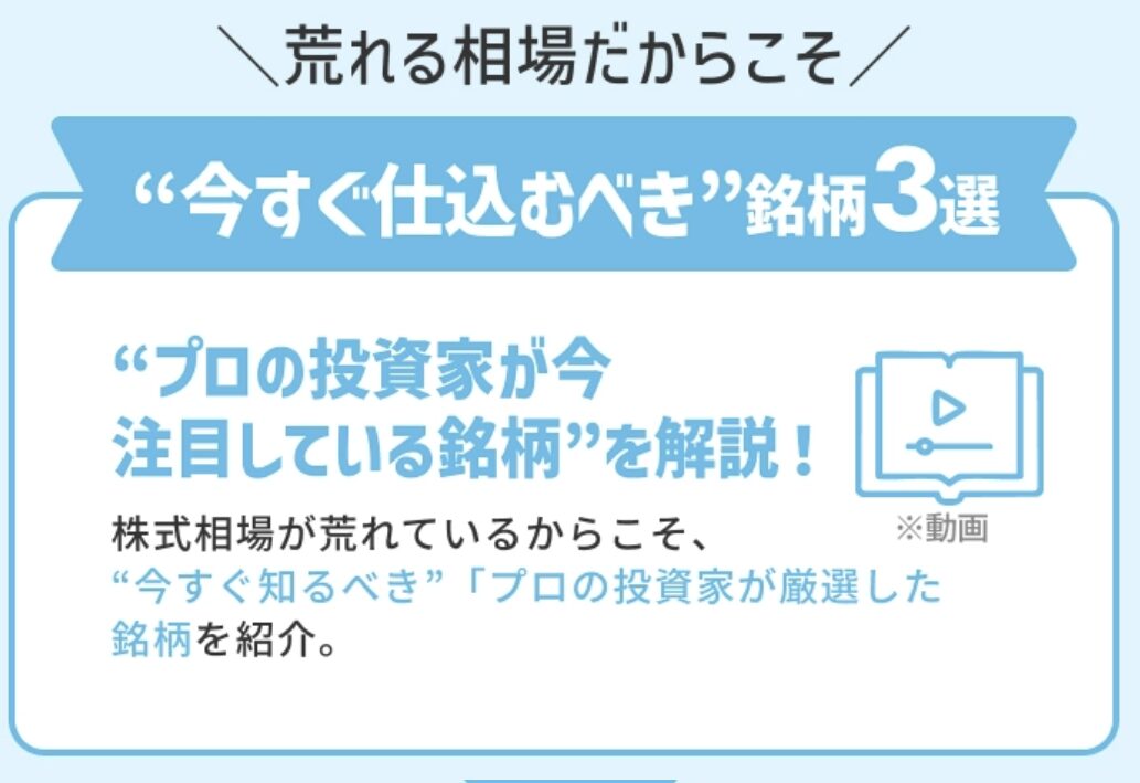 今回の無料講座では、直近、株価が下落しているのに将来の期待値が高い銘柄など、今すぐ役立つ情報が凝縮されています。
