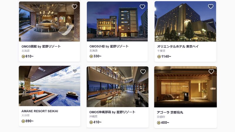 GWでも夏休みでも、同じコイン数で同じホテルに泊まれる。
